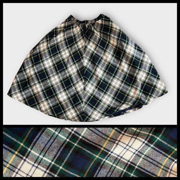 Vintage 50s Wool Blend Plaid A-line Skirt Blue Green White Pockets XXS 00 Preppy