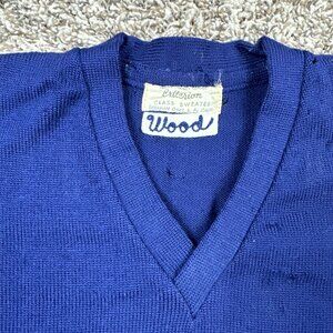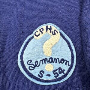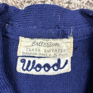 Vintage 50s Wool High School Class Sweater Criterion USA Chain Stitch Blue Logo