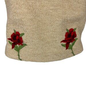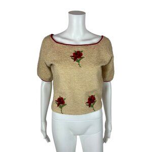Vintage 50s Wool Sweater Women's Medium Embroidered Red Rose Top Alex Colman