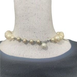 Vintage 50’s faux cream pearl Beaded knotted choker style Necklace with extender
