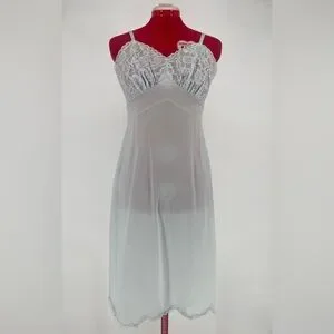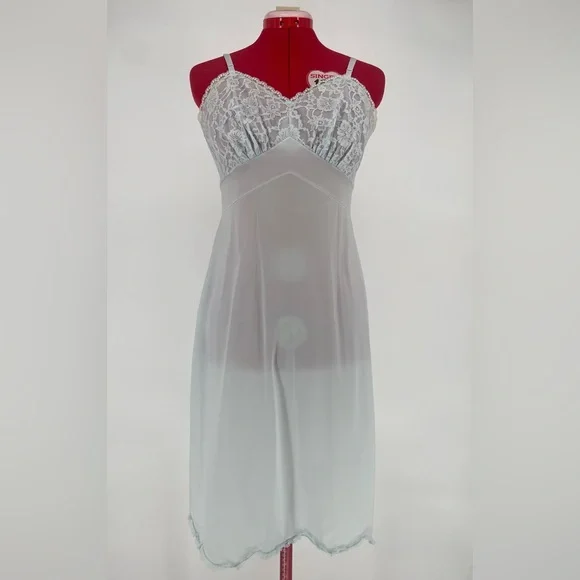Vintage 50s/60s Baby Blue Vanity Fair Lacey Full Slip With Scalloped Lace Hem