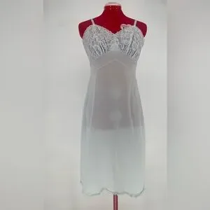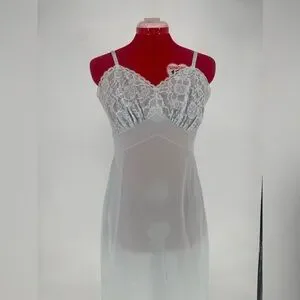 Coquette Feminine Lace Overlay Lacey Classic Vintage Lingerie Full Slips Slip Dress Nightgown Spaghetti Strap Scalloped Hem Nylon Layering Pinup Retro Old Hollywood Glamour