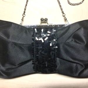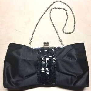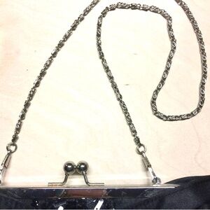 Vintage 50s/60s Black Satin/Sequined Metal KissLock Evening Bag Clutch w/Chain