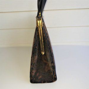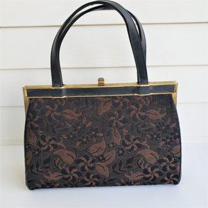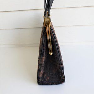 Vintage 50s/60s Brown Floral Tapestry Leather Top Handle Handbag