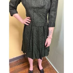 Vintage 50s/60s Green & Black Brocade 2 Piece Skirt Set S