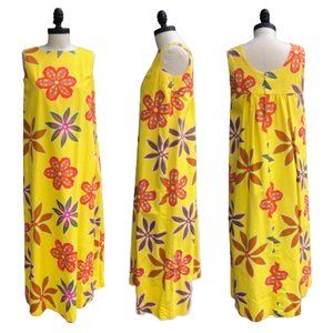 Vintage 50s/60s Hoaloha Hawaiian Barkcloth Yellow Floral Maxi Tiki Dress XS/S