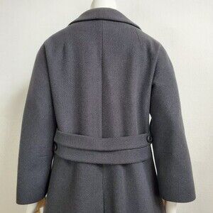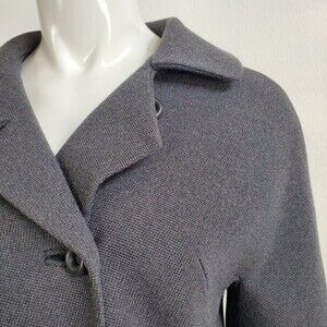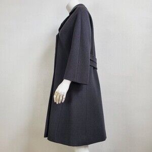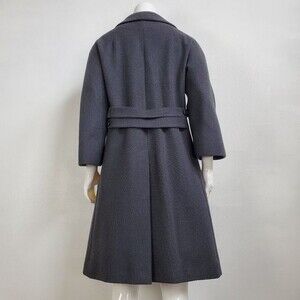 Vintage late 50's/early 60's Nordstrom Best union made grayish-blue double-breasted midi-length car coat with inner purple lining. Made between 1955-1963 based on union tag.