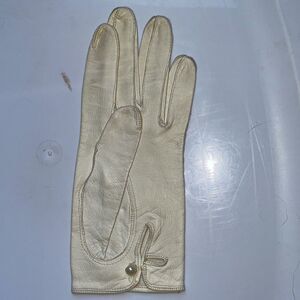 Vintage 50s/60s Size 6 off white leather gloves with pearl button at wrist