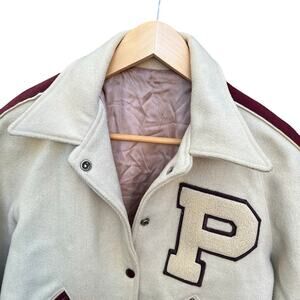 Vintage 50’s-60’s Varsity “P” Embroidered Jacket Off White Maroon Large 19x25
