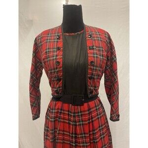 Vintage 50s/60s red buffalo Plaid dress, Jacket and Belt Julie Clark
