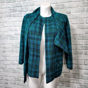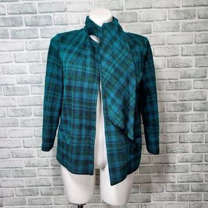 Vintage 50s Herbert Levy Tie Scarf Collar Bright Plaid Tweed Blazer Capelet