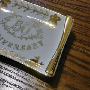 Vintage 50th Anniversary Porcelain Dish. Gold trim and lettering.