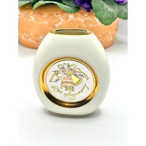 Vintage 50th Anniversary Vase 24K Gold Edged Art Of Chokin Made In Japan