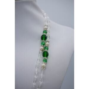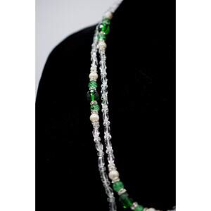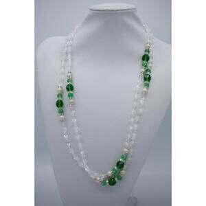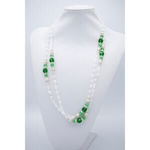 Vintage 54" Crystal Beaded Necklace Sparkling Green Pearl 54" NOS 1980s Bin3