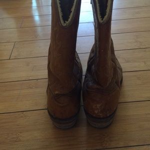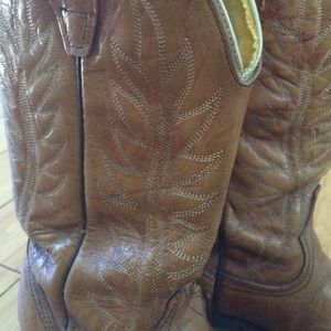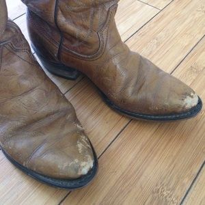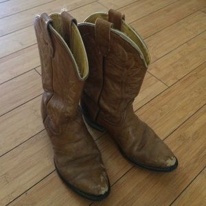 Vintage leather cowboy boots, cognac leather, distressed. Circa 1970's-80's