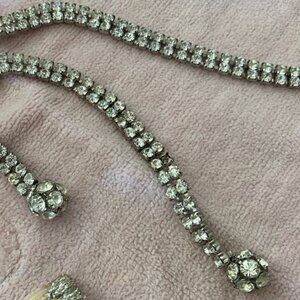 Vintage 5pc ANTIQUE SILVER & RHINESTONE Belt BRACELET Necklace EARRINGS HairClip