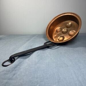 Vintage Copper and Iron Egg Poacher Pan Country Farmhouse Decor 6 Inch Pan