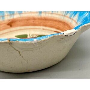This gorgeous bowl measures . It has a one chip, a couple "fleabites" & a slight crack on back that doesnt go thru to front. Overall, this bowl is in good condition with signs of its age and use. It is unmarked but classic 1930s-40s-50s Oaxaca Mexico Dripware. See photos for all details.