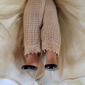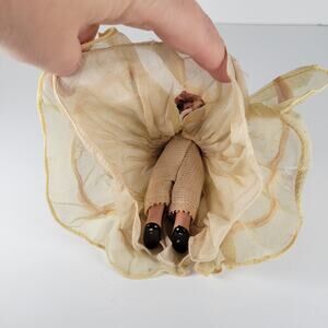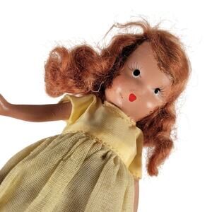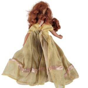 Vintage 6” Redhead Doll Yellow Gown Pink Ribbon Accents Collectible