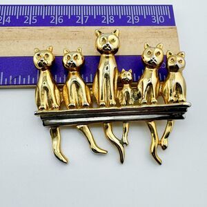 Vintage 6 Sitting Cats Shelf Fence Brooch Retro Statement Grandma Cottage Gift