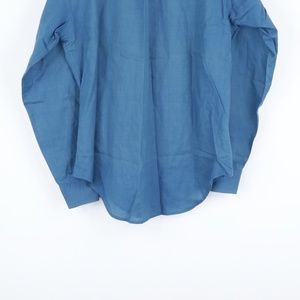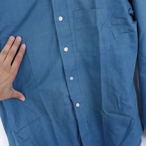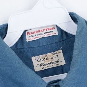 Vtg 60s Mens Medium Distressed Long Sleeve Solid Button Down Dress Shirt Blue