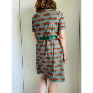 Vintage 60 Mod Style Dress Houndstooth Buckle Design Green/Red Designer Sz 6-8