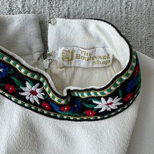 Vintage 60-70s Frock Style Dress with Floral Folk Art Details Size 6