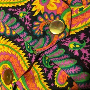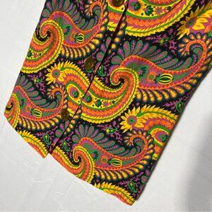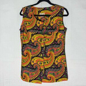Vintage 60/70s Leisure Lady Bold Colourful Paisley Sleeveless Button Front Top S