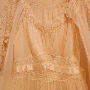 Vintage 60s 2pc Vanity Fair Peignoir Set Knee Length Nylon Chiffon Gown/Robe 32