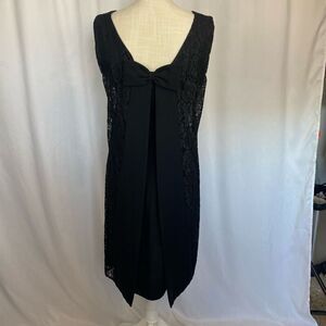 Vintage 60s 50s Black Dress Lace Overlay Sleeveless Bow Union Made Cocktail SZ S