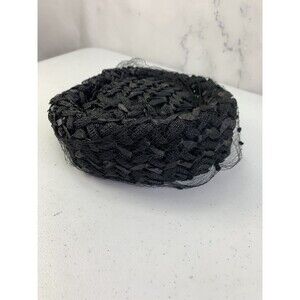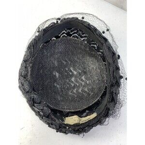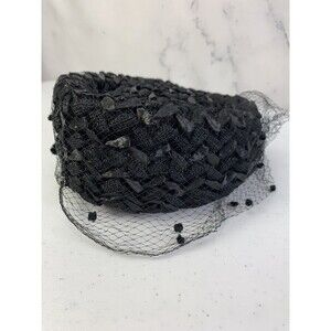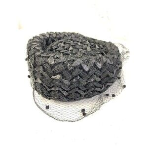 Vintage 60s 50s Dayne Fascinator Hat Union USA Black Straw Classy Jackie Kennedy