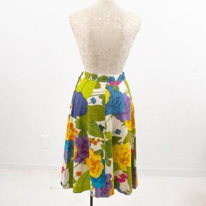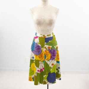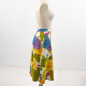 Vintage 60s 50s Pinup Floral Print Midi Skirt