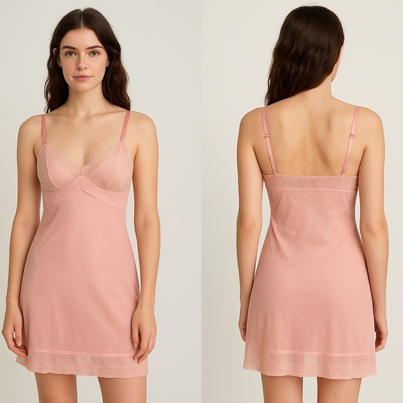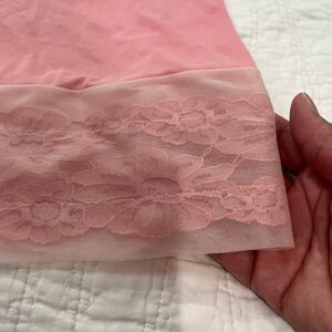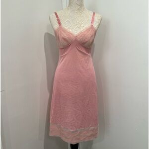 Vintage 60s 70s Blush Pink Lace Trimmed Slip Sz. S