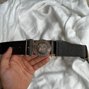 Rare Vintage 60s 70s Boyscouts Of Canada Brown Leather Metal Clasp Belt Buckle Belt