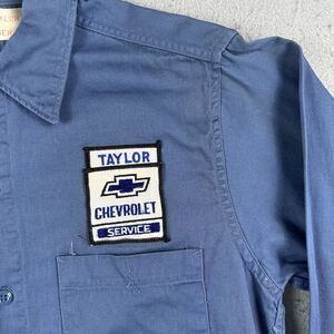 Vintage 60s 70s Chevrolet Service Shirt Men’s Small Blue Red Kap Mechanic Chevy