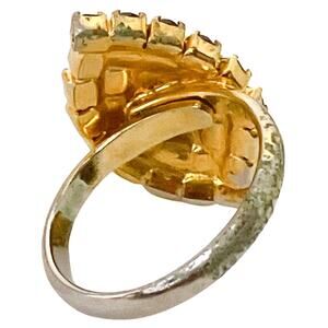 Born from the cocktail culture of the 1960s–70s, this oversized navette ring brings unapologetic retro confidence with its brilliant sparkle in royal blue, garnet red, and rich gold tones among clear rhinestones