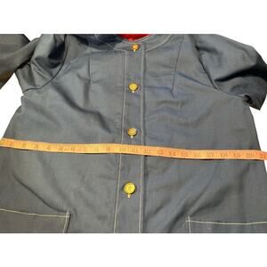 Vintage 60s 70s Collarless Car Coat Contrasting Stitch Sz M Blue White Cosplay
