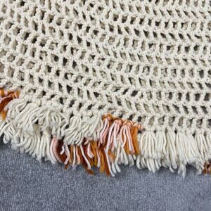 Vintage 60s 70s Cream Hand Crocheted Fringe Poncho One Size