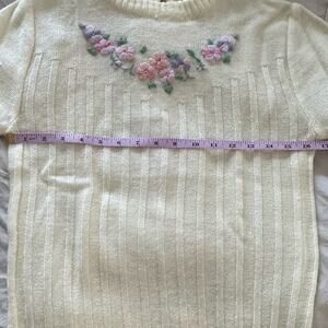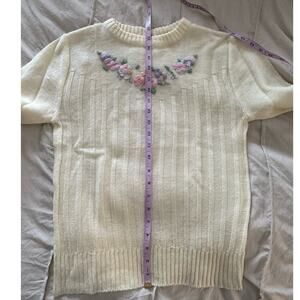 Vintage 60s 70s Dayne Taylor Vintage Floral Embroidered Crew Neck Knit Sweater