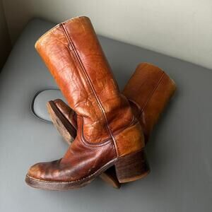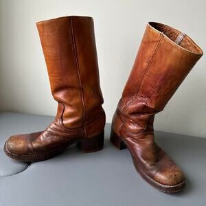Vintage 60s 70s Frye Brown Mahogany Leather Campus Heel Boot