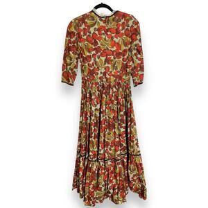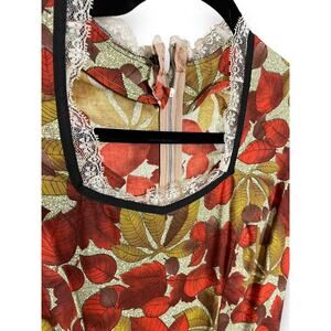 Vintage 60s 70s Handmade Fall Leaves Cotton Full Sweep Dress Prairie Cottagecore