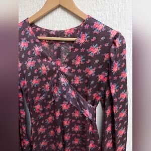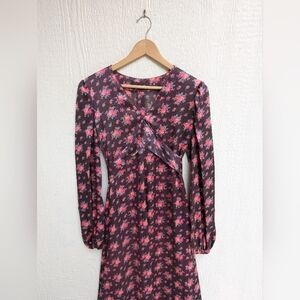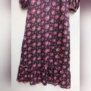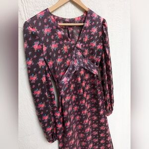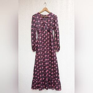 Vintage 60s 70s Handmade Floral Maxi Heavyweight Dress Gown Tie Back Medium