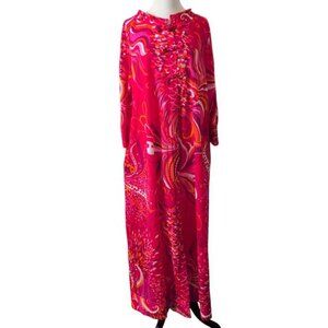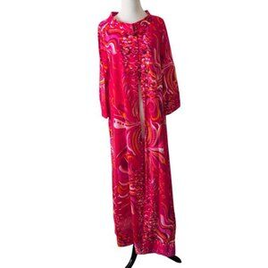Vintage 60s 70s Hollywood Dress Robe L-XL Psychedelic Nightgown Groovy Boho Chic