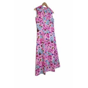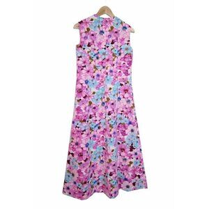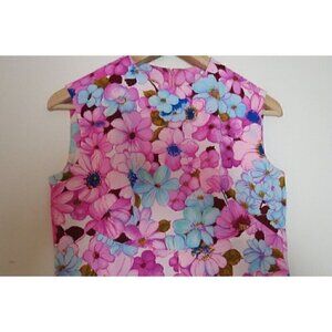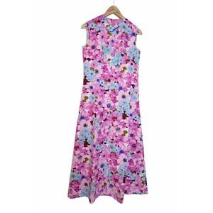 Vintage 60s 70s Hostess Hawaiian Purple Pink Floral Sleeveless Dress S 0571