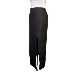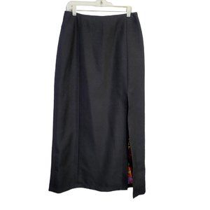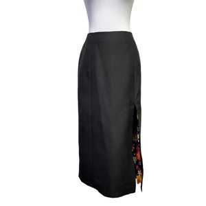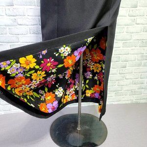 Vintage 60s 70s Jack Fin M/L Black Hi Waisted Maxi Skirt Slit Peekaboo Floral