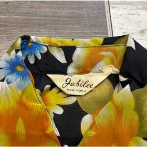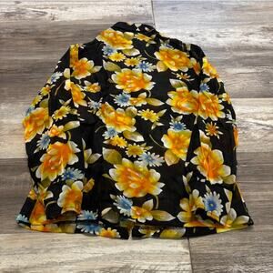 Vintage 60s 70s Jubilee Yellow Black woMens S Floral Long Sleeve Shirt Sunflower