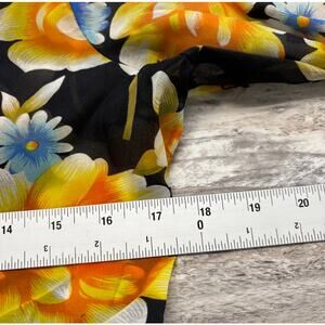 Vintage Jubilee Yellow Black woMens S Casual Floral Buttondown Long Sleeves sunflower top dagger collar hippie disco unique