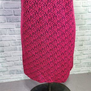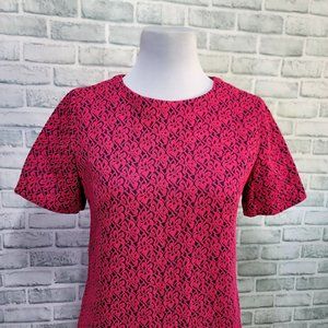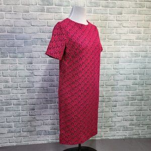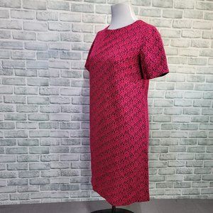 Vintage 60s 70s Womens M/L Handmade Double Knit Polyester Floral Brocade Sheath Dress. Bodice is darted. Metal zip back closure, short sleeves