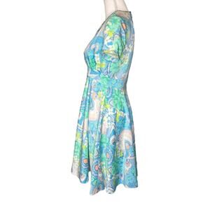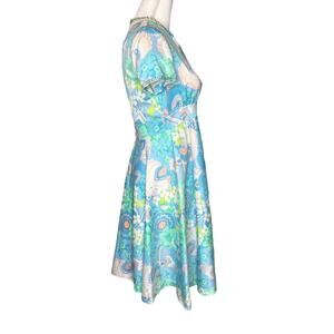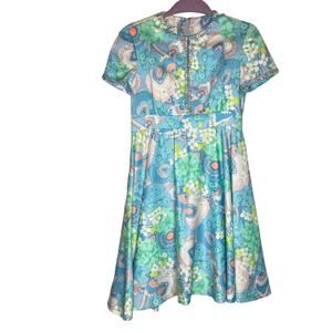 Vintage 60s 70s Nardiello for Rona NY Floral Dress DeepV Rhinestones Size Small