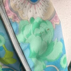 • Soft synthetic mod floral fabric in pastel greens and blues with pink accents